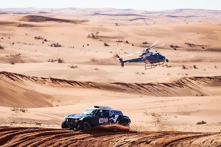Второй круг вокруг Хаиля представлял собой смесь песчаных трасс, дюн и верблюжьей травы. Этап стал особым испытанием для подвески и гонщиков. Команде X-raid удалось улучшить настройки MINI JCW Rally Plus, Куба Пшигонски и Арман Монлеон заняли одиннадцатое место. Их товарищи по команде Себастьян Альперн и Ронни Грауэ заняли 15-е место. Два экипажа MINI JCW Buggy Денис Кротов/Константин Жильцов и Шейх Халид Аль-Кассими/Ола Флоен завершили день на 25-м и 26-м местах.