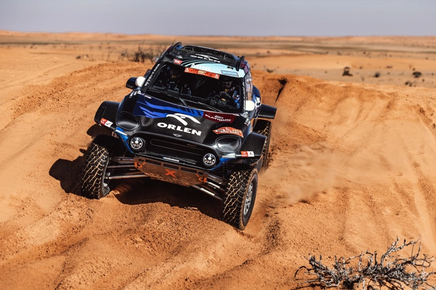 Dakar Rally 2023 – result SS5 1. N. Al-Attiyah / M. Baumel – Toyota – 4h 13m 23s 2. C. Sainz / L. Cruz – Audi – 4h 15m 20s 3. S. Peterhansel / E. Boulanger – Audi – 4h 17m 07s 4. Y. Al-Rajhi / D. von Zitzewitz – Toyota – 4h 22m 06s 5. G. Chicherit / A. Winocq – BRX – 4h 24m 32s ... 11. J. Przygonski / A. Monleon – MINI JCW Rally Plus – 4h 34m 11s ... 15. S. Halpern / B. Graue – MINI JCW Rally Plus – 4h 48m 15s ... 25. D. Krotov / K. Zhiltsov – MINI JCW Buggy – 5h 06m 15s 26. Sh. K. Al-Qassimi / O. Floene – MINI JCW Buggy – 5h 09m 57s Overall standings after SS5 1. N. Al-Attiyah / M. Baumel – Toyota – 20h 47m 36s 2. S. Peterhansel / E. Boulanger – Audi – 21h 10m 12s 3. Y. Al-Rajhi / D. von Zitzewitz – Toyota – 21h 14m 37s 4. C. Sainz / L. Cruz – Audi – 21h 22m 28s 5. H. Lategan / B. Cummings – Toyota – 21h 45m 34s ... 19. Sh. K. Al-Qassimi / O. Floene – MINI JCW Buggy – 23h 47m 40s ... 22. D. Krotov / K. Zhiltsov – MINI JCW Buggy – 24h 08m 10s ... 24. S. Halpern / B. Graue – MINI JCW Rally Plus – 24h 10m 35s ... 33+. J. Przygonski / A. Monleon – MINI JCW Rally Plus – 27h 39m 53s
