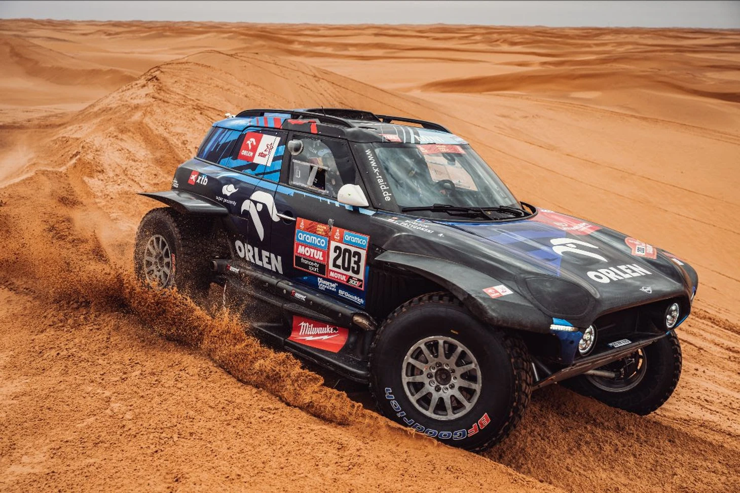 После вчерашнего дня отдыха в Эр-Рияде гонщики вышли отдохнувшими на девятый этап в Харад. Два экипажа на MINI JCW Rally Plus Куба Пшигонски / Арманд Монлеон и Себастьян Альперн / Бернардо «Ронни» Грауэ атаковали с самого начала. После 358 километров оба экипажа закрепили за собой позиции в первой десятке: Пшигонски финишировал шестым, Альперн - девятым. Таким образом, аргентинец поднялся на одиннадцатое место в общем зачете. Шейх Халид Аль-Кассими и Ола Флоен также сегодня хорошо выступили на багги MINI JCW, заняв двенадцатое место.