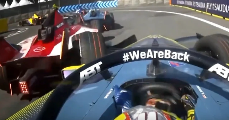 Воскресной ночью начался первый сезон новой электрической «Формулы Е»: с болидами облика Gen3 и с «Мазерати» и «Маклареном», но без половины немецких автопроизводителей. Выиграл гонку Джейк Деннис на «Андретти», но самым мозговзрывающим моментом стал вот этот тычок от «АБТ» Робина Фряйнса в зад «Ниссана» Нормана Нато на первом круге: