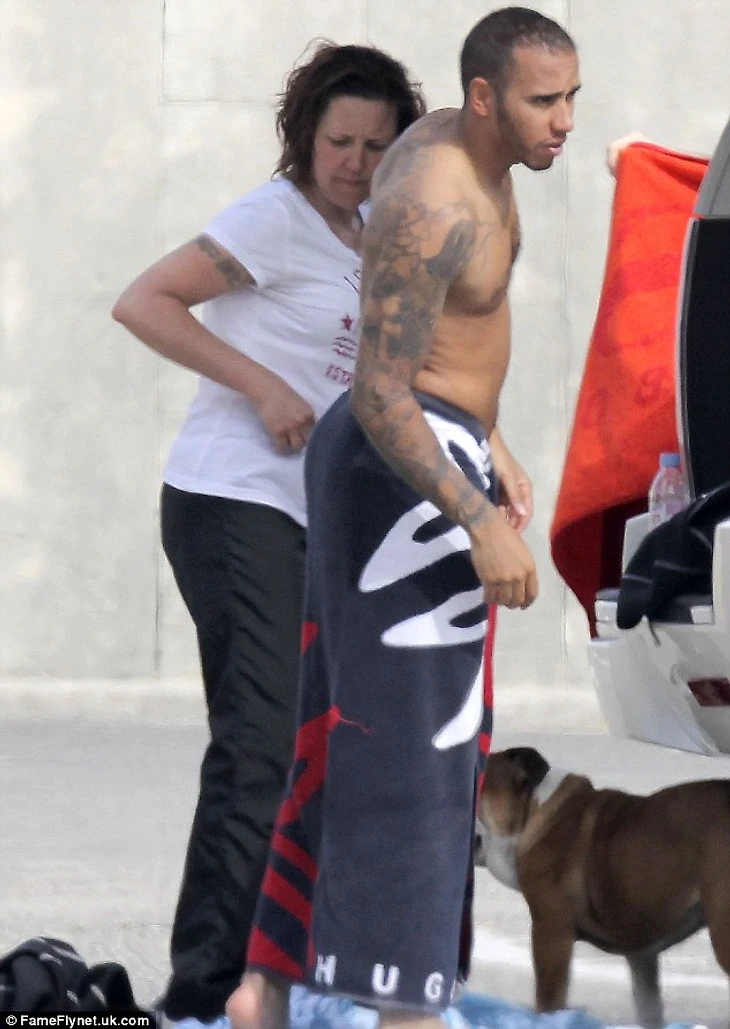 А это шпионские фотки с летнего отпуска Хэмилтона на Лазурном Берегу – вторая половина сезона обычно еще впереди, потому пилоты в нем обычно не расслабляются и не забивают на тренировки.