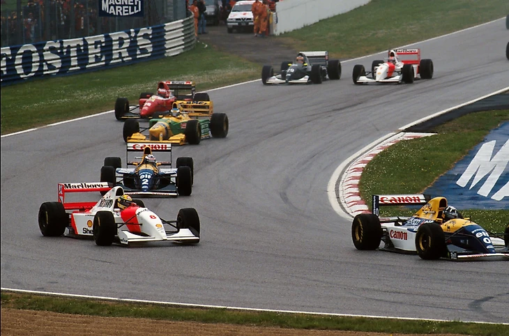 К дню гонки, конечно, бразилец был в своей обычной опасной форме и мог быть проигнорирован только на свой страх и риск. Ален Прост понял это сразу же на старте, когда небо заволокло тучами. Ведь французу предсказывали очередной разгром. «Погода прямо, как по заказу Сенны», - говорили соперники. После Донингтона приходилось признать, что они были правы. Так оно и выглядело, когда Прост снова проиграл старт, как и в Кьялами.