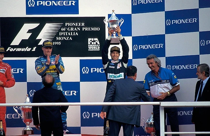 В то время как Алези смог довести свою машину до подиума.