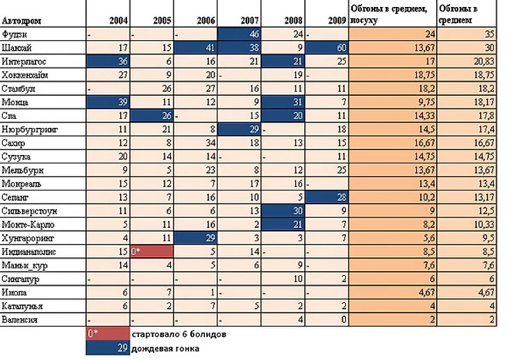 Следующий шаг � определение временных рамок. С какого времени считать обгоны � с 50-х, 70-х годов ХХ века, или, может, взять в расчет лишь последние два-три сезона? Конечно, чем больше данных, чем шире временной интервал, тем полнее и точнее анализ, но в реальности подсчет количества обгонов можно вести лишь с 1983 года. В то время «Ф-1» второй год подряд использовала компьютеризированную систему хронометража, а годом ранее данная технология еще сбоила и не давала стопроцентно верную информацию, особенно на первых кругах заездов.