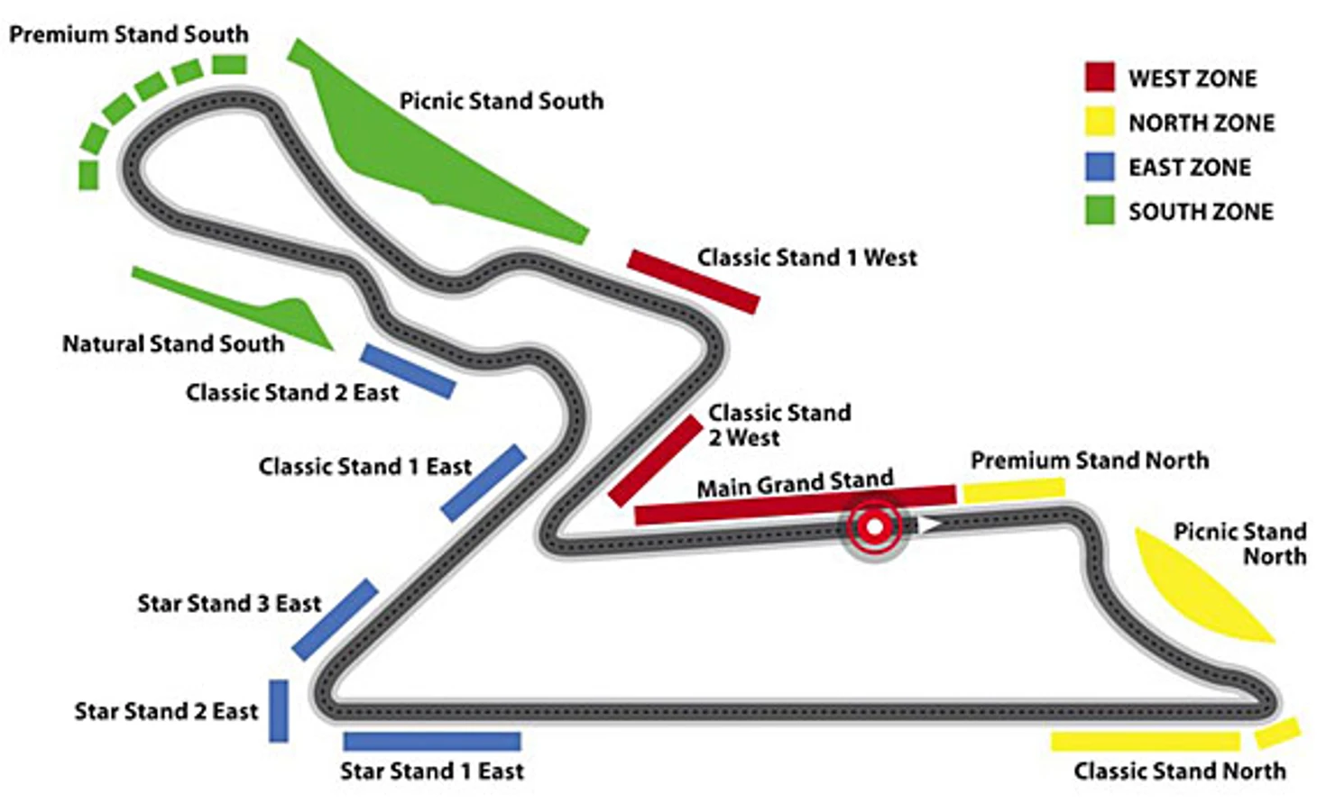 Первый сектор автодрома «Будда Интернэшнл» представляет собой очень скоростную секцию, разбитую тремя поворотами и одним левым изломом. Второй сектор уже хитрее – полотно начинает петлять в эсках с шестого по девятый поворот, а изюминкой дальней части трека станет десятый профилированный поворот с двойным апексом. Многие также отмечают перепады высот на третьем секторе.