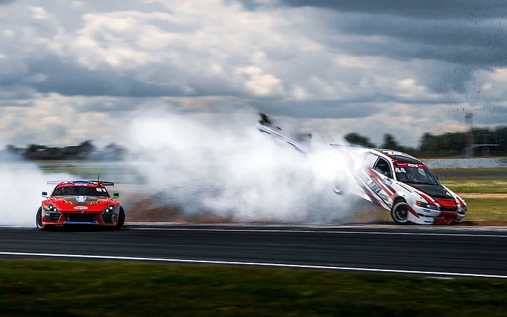 И полученные во время этого незапланированного ремонта навыки механикам пригодились. По ходу уик-энда Максим еще несколько раз ошибался с аналогичными последствиями для машины. Но его полеты затмил Андрей Астапов из LUKOIL Racing Drift Team, который на тренировке перед топ-16 совершил первые в истории RDS GP «уши» — пилот вылетел с трассы и перевернул свой автомобиль на крышу!