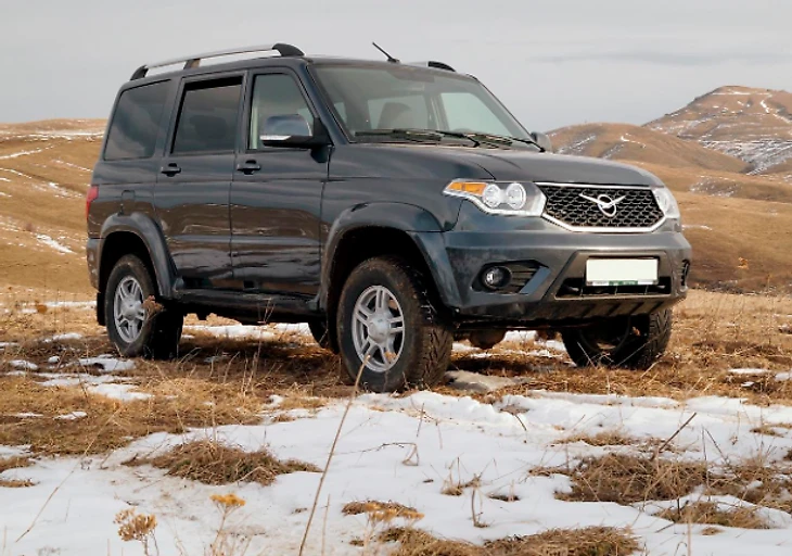 Выгодно отличаясь по цене от зарубежных экземпляров в своем классе, автомобиль может похвастаться конкурентоспособными техническими параметрами. Трансмиссия с подключаемым полным приводом дает выбор при движении по асфальту или пересеченной местности. Двигаться по бездорожью поможет раздаточная коробка с двумя ступенями. Машина оснащена 5-ступенчатой механикой от китайского изготовителя армейской техники BAIC, гидроусилителем, регулируемой рулевой колонкой. Спереди установлена пружинная подвеска, сзади – рессорная. Уверенное движение на высокой скорости обеспечивает наличие стабилизатора подвески поперечной устойчивости. УАЗ Патриот быстро набирает скорость и умеренно расходует горючее: 12,5 литров на 100 км в смешанном цикле. NVH-комплекс отвечает за качественную виброизоляцию и низкий уровень шума внутри. Климат-контроль распространяется на весь салон, предусмотрен обогрев зеркал, руля, сидений. При сложении заднего пассажирского ряда получаем внушительный багажник на 2415 литров.