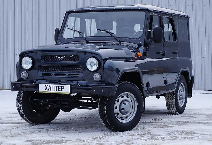 Это конструктивно простой внедорожник, который идеально подойдет для поездок по местности, где нет дорог, а есть направления. Типичный вездеход. Цельнометаллический кузов автомобиля с массивным передним бампером оснащен крюками для буксировки. Вариации автомобиля для экспедиций оборудованы электрической лебедкой. Там, где передвигается Хантер, возможны любые форс-мажоры. При движении по обычной дороге используется задний привод. В случае осложнений на маршруте система Part-time переводит транспортное средство на полноприводный режим. Для повышения тяги в экстремальных ситуациях помощь 5-ступенчатой трансмиссии оказывает «раздатка», которая удваивает количество передач. Наличие гидроусилителя руля существенно  облегчает маневренность. Внутренняя отделка выполнена из легко моющихся материалов. В салоне установлены поручни для пассажиров. Можно менять угол свечения фар при помощи гидрокорректора. Эти опции не обязательны в черте города, но пригодятся при покорении бездорожья. На панели приборов есть все нужное и ничего лишнего. В машине можно обустроить ровное спальное место, разложив задние сидения, а при их сложении в багажное отделение помещается габаритный груз.