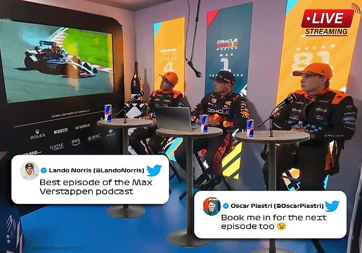 За долгий рекордный победный сезон чемпион постоянно попадал в топ-3 – и постоянно сидел и обсуждал что-то с другими пилотами. В итоге про традиционные видеозаписи из подиумной комнаты начали шутить как про «подкасты с Максом Ферстаппеном», а друг нидерландца Ландо Норрис из «Макларена» даже подхватил волну и сам делал мемы о каждом своем появлении в кадре: