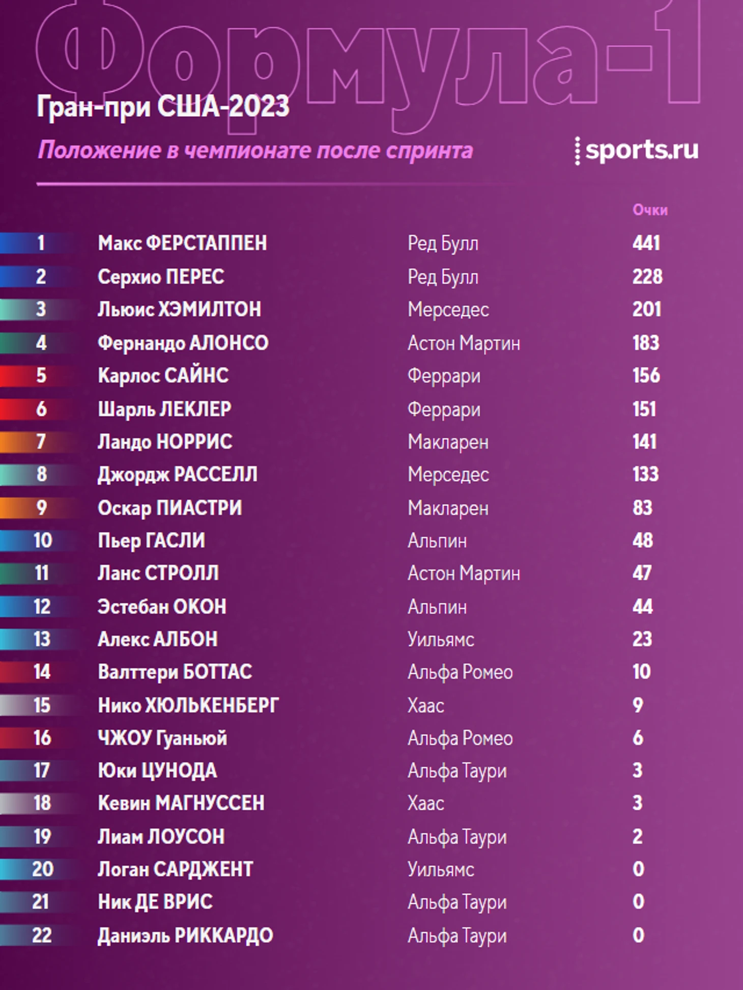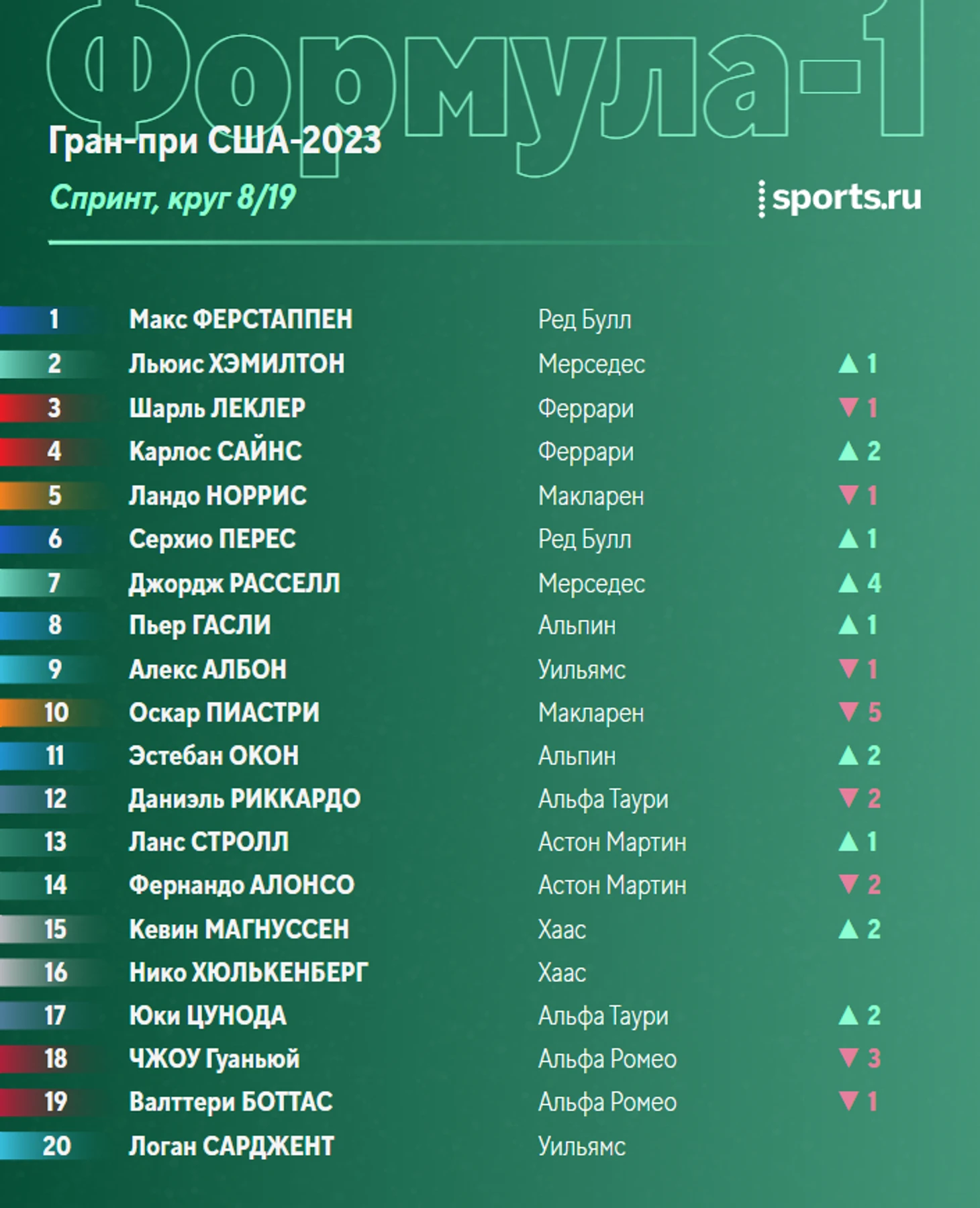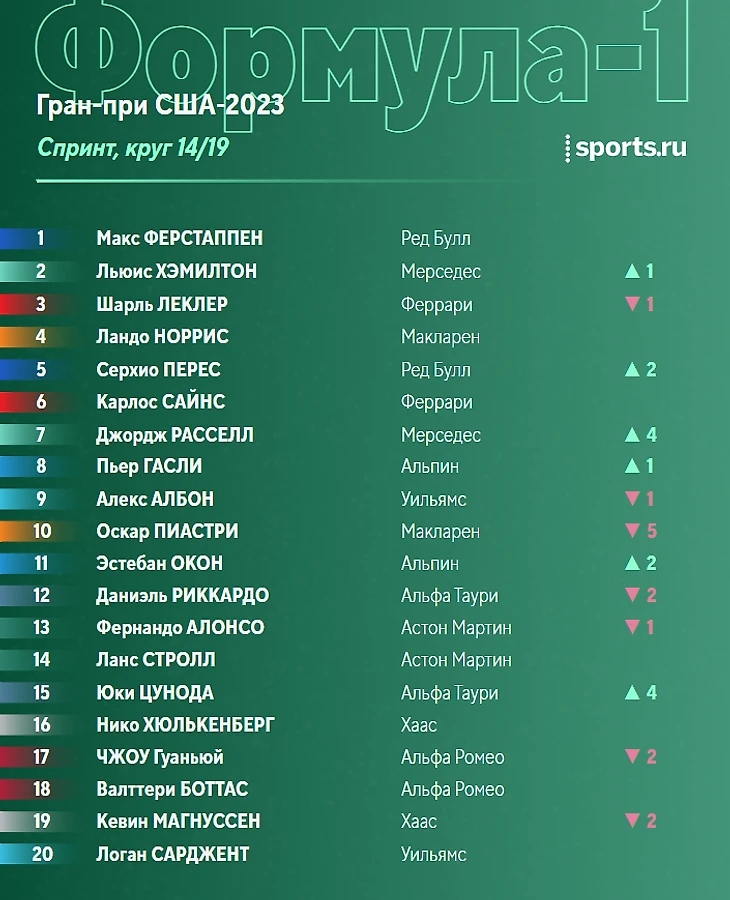 Ферстаппен выигрывает спринт Гран-при США.