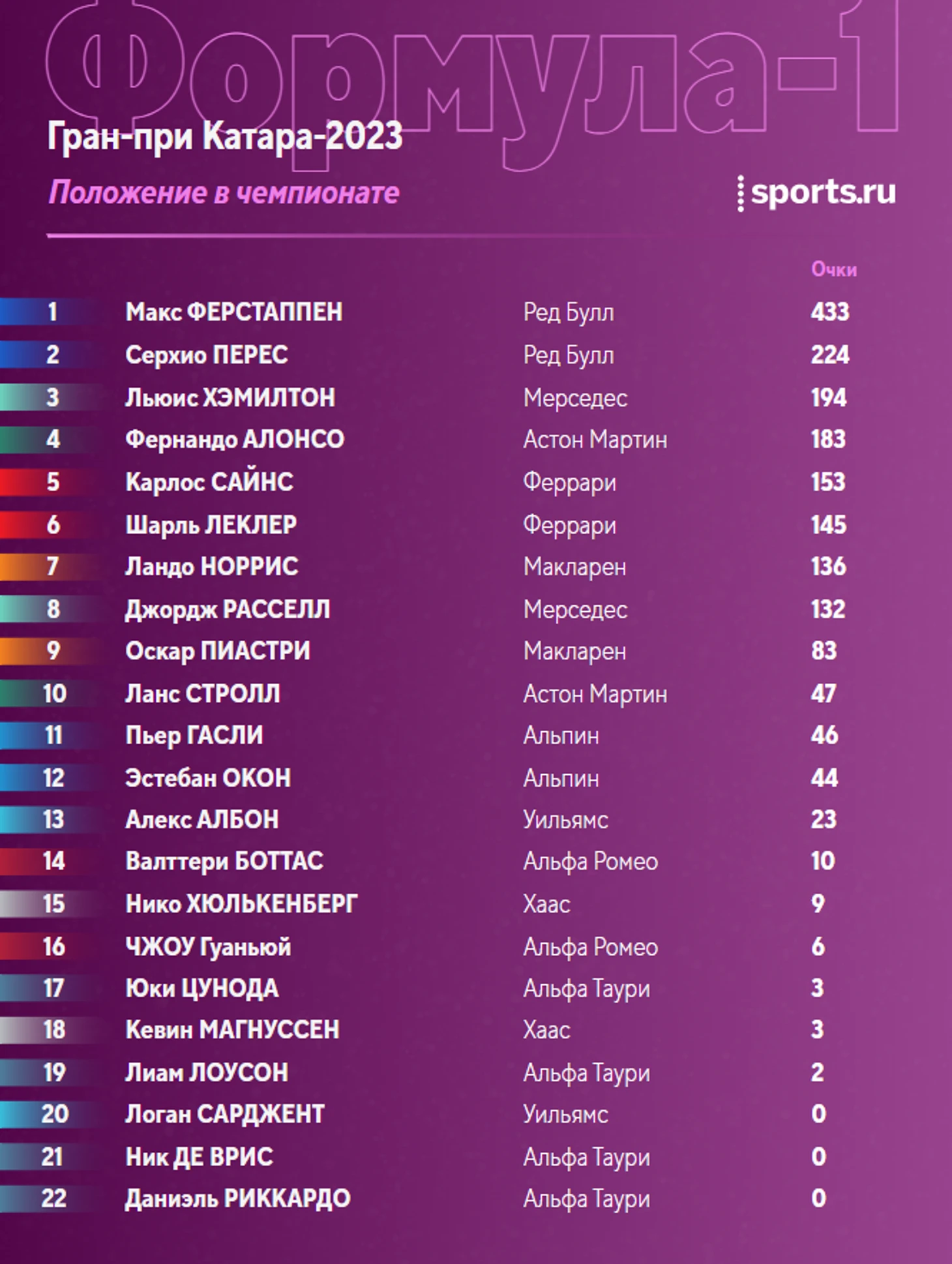 Расклады в чемпионате перед заездом: