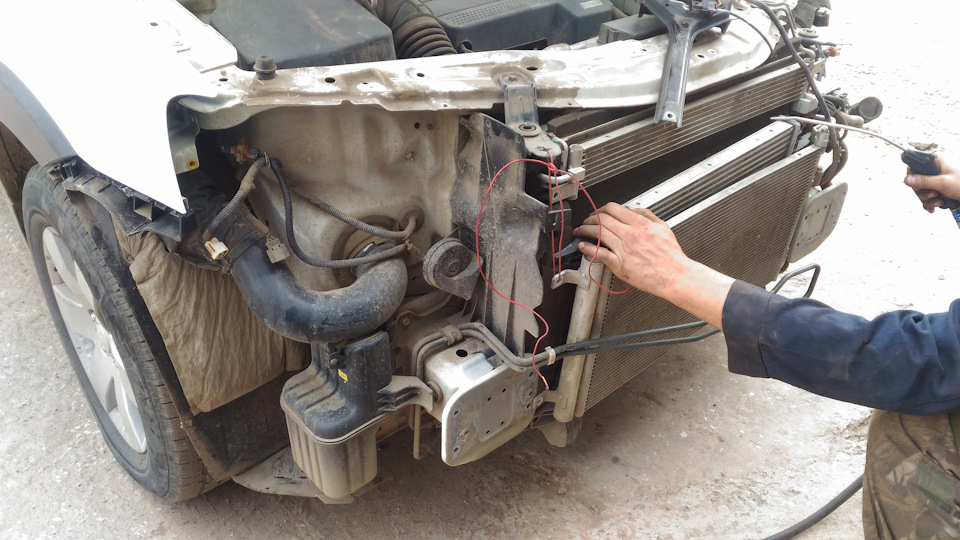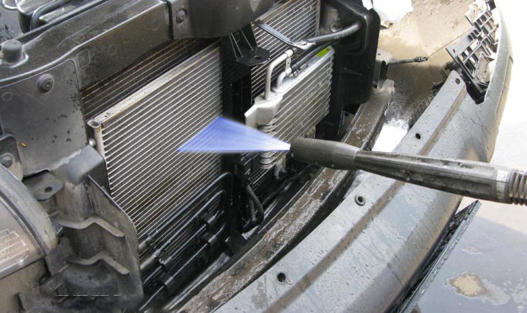 Не стоит пытаться продуть/промыть сразу несколько радиаторов с одной стороны. Транспортные средства, оснащенные климатическими системами, имеют конденсатор кондиционера, установленный перед основным радиатором. Если вы предпримите попытку промыть их, особенно через решетку радиатора, то это не даст положительных результатов. При пропуске струи воды/сжатого воздуха через один, второй просто забьется грязью, что может только усугубить ситуацию.