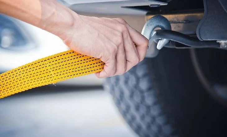 Выяснив, что буксировка возможна, готовим снаряжение для ее выполнения. Крепеж в виде крюка, карабина или шакла должен быть правильно соединен с тросом и подходить к буксировочным элементам ведомой машины. Трос выбирайте крепкий, но легкий и упругий. Непрочная лента может порваться и повредить автомобили, а излишне толстый канат проблематично соединять с буксировочным крепежом. Правила обязывают отметить сцепку флажками красно-белого цвета размером 20 х 20 см. Это необходимо для того, чтобы сделать трос хорошо заметным для всех участников дорожного движения.