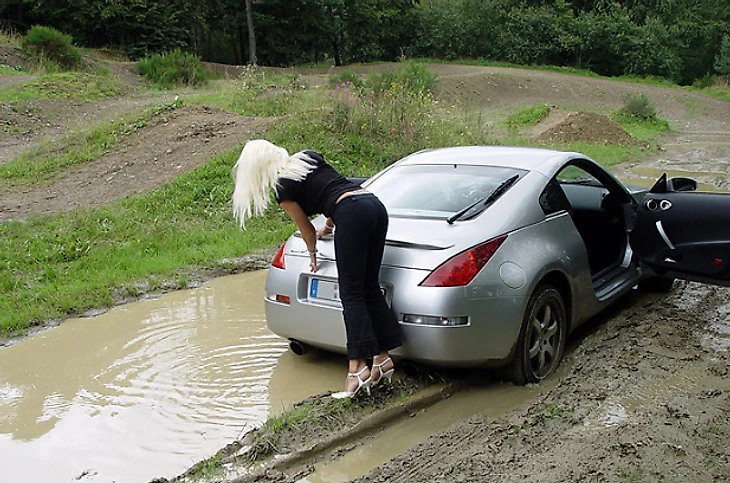 К сожалению, перечисленные выше способы преодоления проблемного участка могут не дать результата. Тогда вам предстоит самый грязный этап освобождения транспортного средства из плена. Если все колеса сидят в грязи примерно одинаково, нужно найти ветки или щебень, плотно уложить их под колеса и пробовать выезжать с пробуксовкой. Бывает, что одно из тяговых колес повисает в воздухе. Тогда нужно попросить находящихся в салоне пассажиров пересесть на нужную сторону машины либо переместить туда багаж, чтобы машина могла опереться на ведущее колесо. Наиболее распространена ситуация, когда легковая машина застревает в колее, раскатанной на грунтовой дороге грузовым транспортом. В этом случае нужно поддомкратить ту сторону машины, где имеются помехи перед колесом. В освободившееся пространство укладываем все, что есть рядом: обломки кирпичей, камни, крупный хворост, строительный мусор. Основная цель – добиться, чтобы днище приподнялось над вершиной колеи.