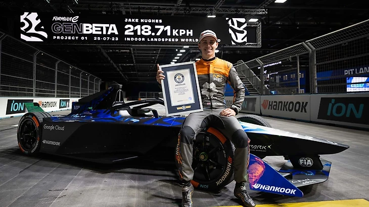 В списке успехов «Формулы Е» есть еще один удачный пример развития ИИ. В конце июля 2023-го серия решила войти в Книгу рекордов Гиннесса и выдать наибольшую скорость в закрытом помещении. Для этого в Лондон привезли выставочный центр ExCeL London (там проложили трассу в 2 км с 346-метровой прямой) и устроили состязание в стиле квалификационной дуэли с участием чемпиона сезона-2016/2017 Лукаса ди Грасси и пилота «Макларена» Джейка Хьюза.