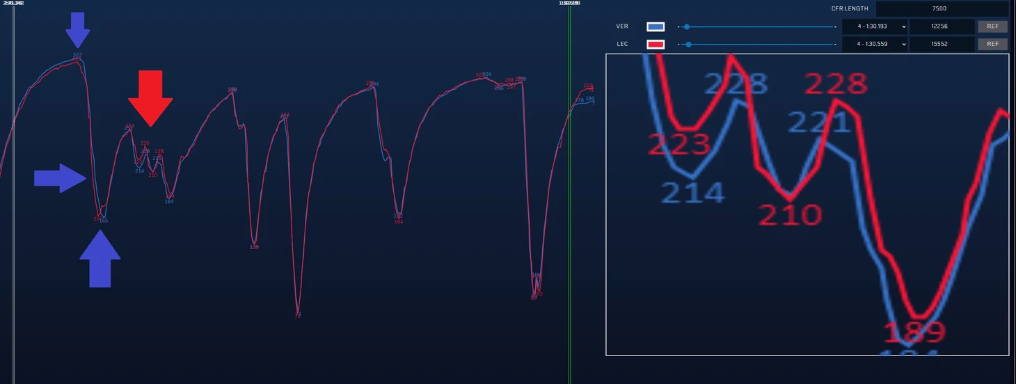 Вот телеметрия быстрых кругов Леклера и Ферстаппена из последней тренировки. Шарль проиграл в первом секторе 0,15 секунды – и все в первых двух поворотах. В следующих «S-ках» монегаск был быстрее «Ред Булл», а потом значительно уступил Ферстаппену в шпильке (+0,05 с) и шикане (+0,15) – то есть на протяжении всего круга Леклер терял именно в медленных поворотах. Это говорит о плохом сцеплении, которое, вероятнее всего, вызвано как раз слабым прогревом шин.