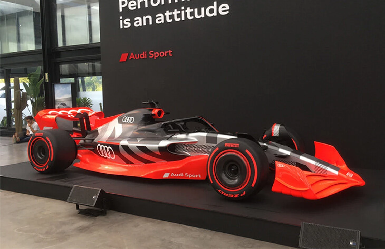 Слоган на банере над концептом болида «Ауди»: «Производительность – это подход».