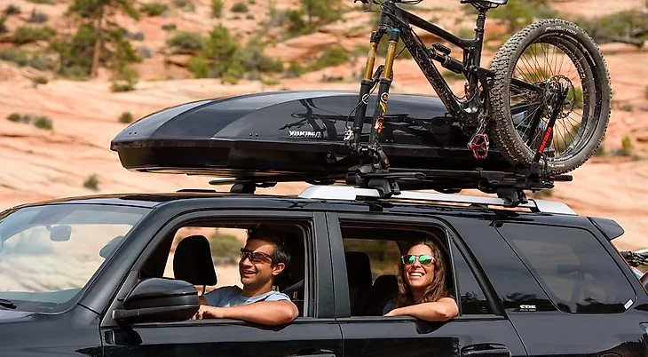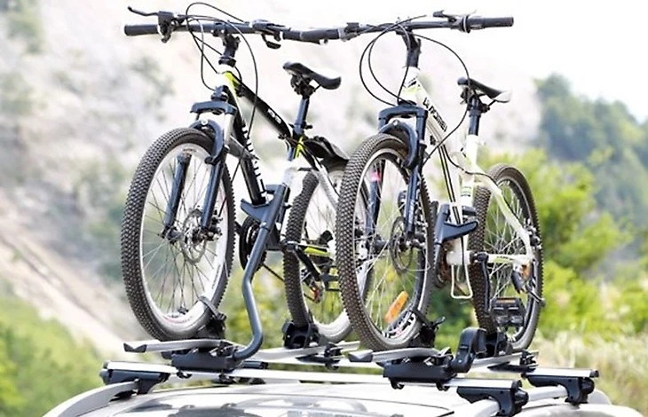 Багажники на крышу. Это, пожалуй, самый распространенный и универсальный тип. Он крепится к поперечинам, которые, в свою очередь, устанавливаются на рейлинги или штатные места на крыше автомобиля. Тип подходит для большинства ТС, имеющих рейлинги или штатные места для поперечин. Разновидность позволяет перевозить от одного до четырех велосипедов и, обычно, это самый бюджетный вариант. Из-за аэродинамического сопротивления крепления возможно увеличение расхода топлива, также багажник затрудняет въезд в гаражи и подземные парковки.