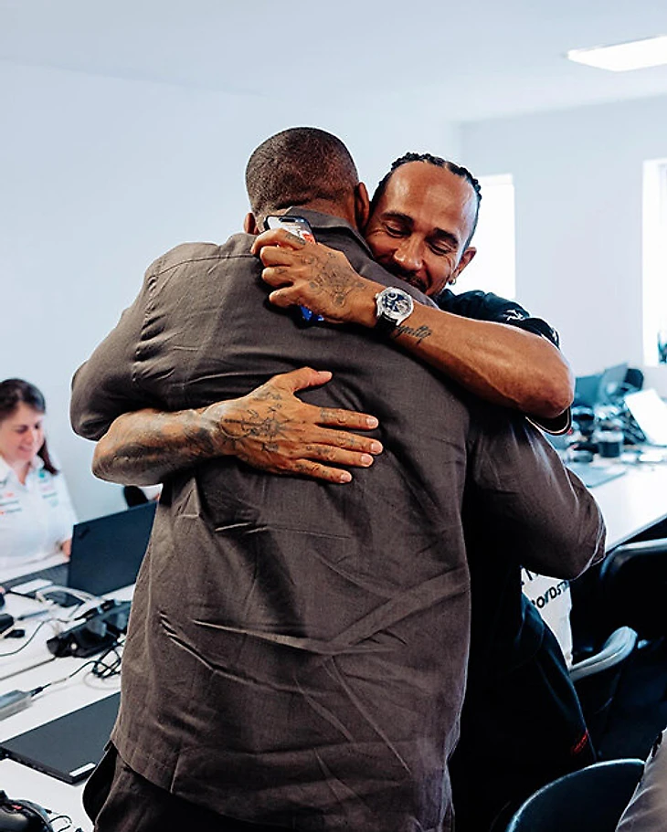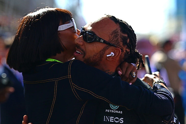 А еще она – тоже подруга и фанатка Льюиса Хэмилтона. С ним и обнималась до старта.