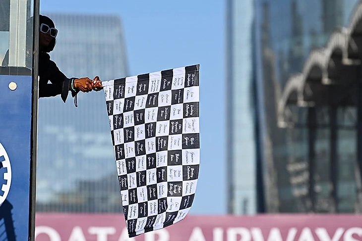 И для Наоми организовали полный набор: даже закрытие заезда взмахом флага!