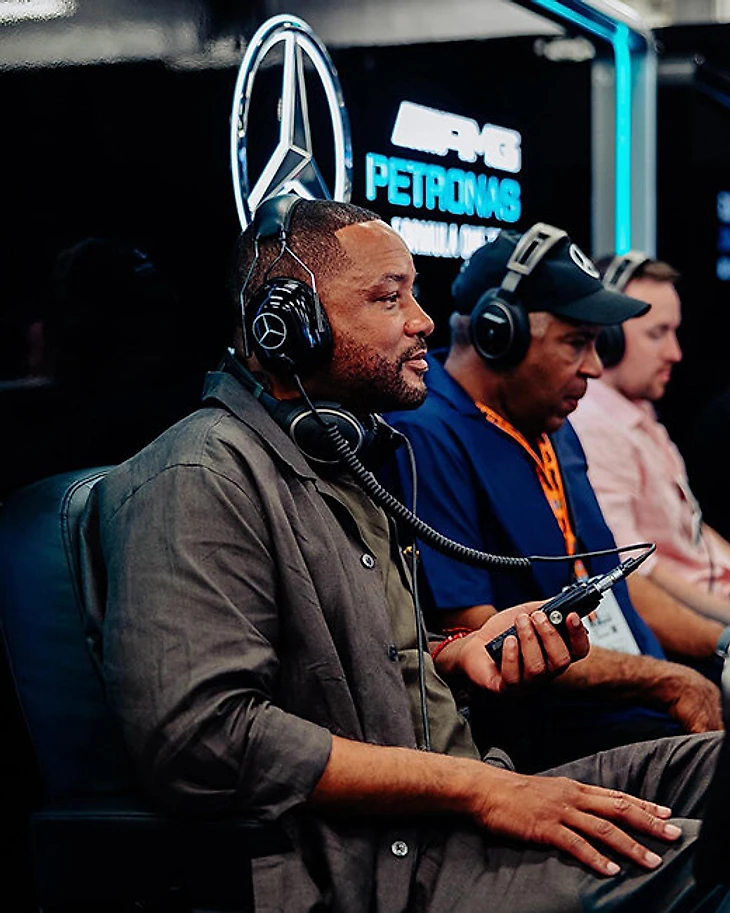 А во время заездов тоже заседал в боксах «Мерседеса», как и Уилл Смит – так что остался не только по возможному контракту с промоутерами.