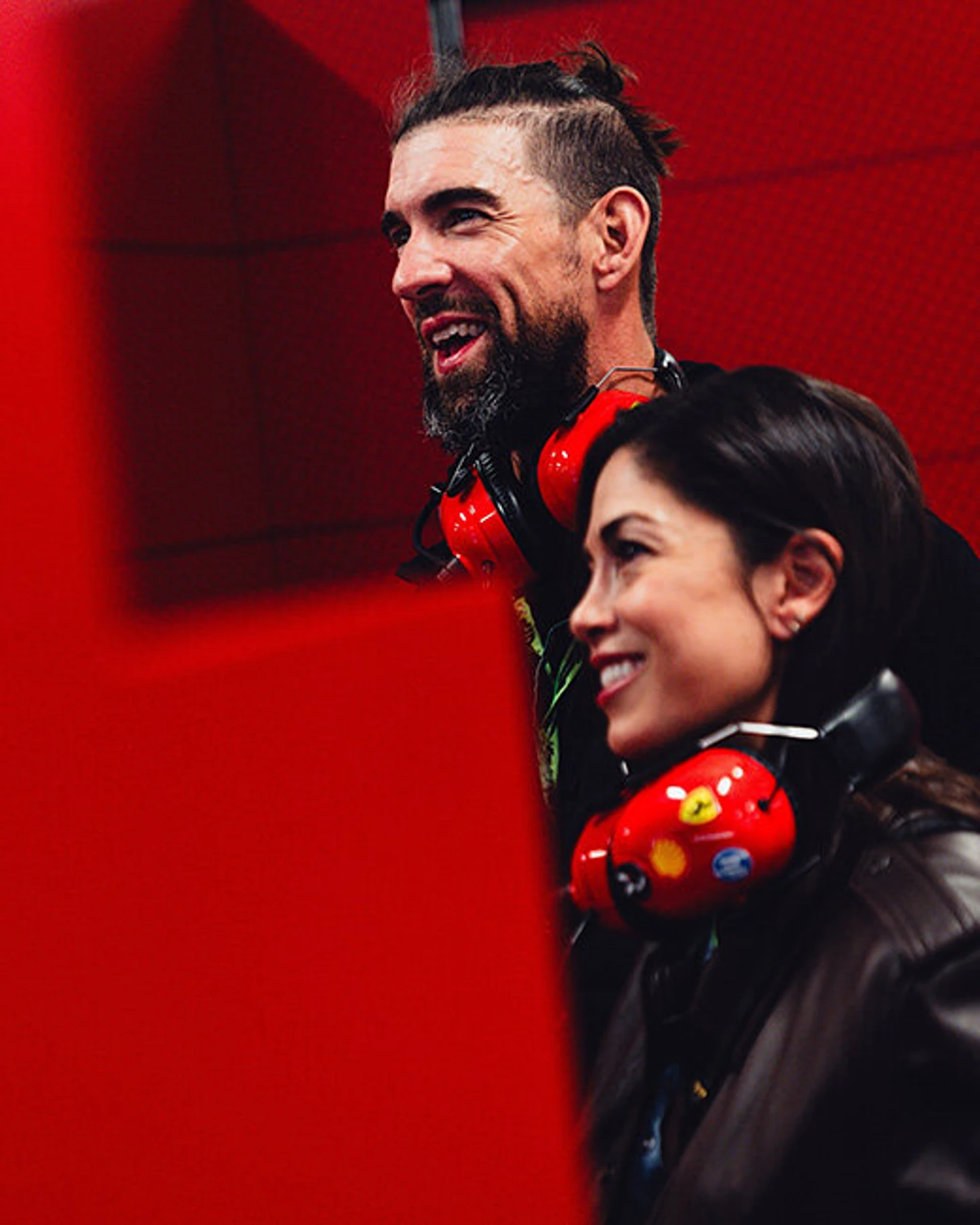 Думали, в Вегасе про «Феррари» все забыли и никто не пришел? Нет – Скудерия принимала в боксах кучу знаменитостей, просто оттуда в публичный доступ утекло мало лиц. Однако суперчемпиона Майкла Фелпса все-таки засняли: