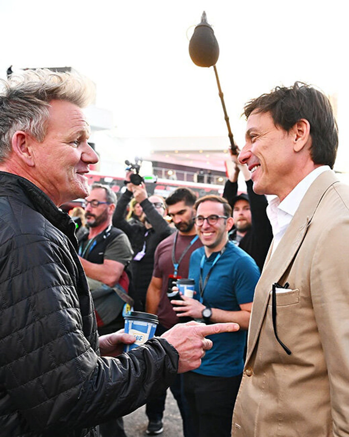 Гордон Рамзи перестал покидать паддок на любом этапе – вот снимается с шефом «Мерседеса» Тото Вольффом