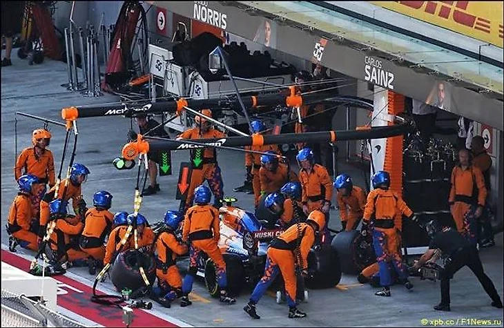 Пит-стоп в Формуле-1 — это слаженная работа высококвалифицированных специалистов, от действий которых зависит время нахождения машины в боксах и, соответственно, положение пилота на трассе. Вся команда действует четко и быстро, выполняя свои обязанности с точностью до долей секунды.