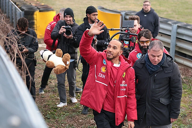 С начала 2025-го гоночные медиа следили за Льюисом: делились инсайдами с тестов, караулили британца вместе с фанатами и изучали коммерческий успех сделки. А еще показали навыки чемпиона в итальянском – вот как он поприветствовал сотрудников Скудерии в январе: