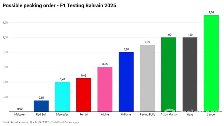 «Для «Макларена» это были успешные тесты, но далеко не идеальные. Ландо Норрис признал, что боролся «с задними колесами немного больше, чем того хотелось бы». Это не выглядело большой проблемой, тем более Андреа Стелла отметил, что небольшая нестабильность задней части – нормальная черта для Бахрейна. Тем более, когда такое влияние оказывал ветер. В паддоке сошлись во мнении, что «Макларен» быстрейший, но у них не такое преимущество, как было у «Ред Булл» перед сезонами 2023 и 2024 годов.
