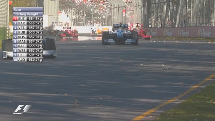 Некоторое время работала графика, указывающая общий вес болида вместе с залитым топливом. Сейчас это уже не так актуально.