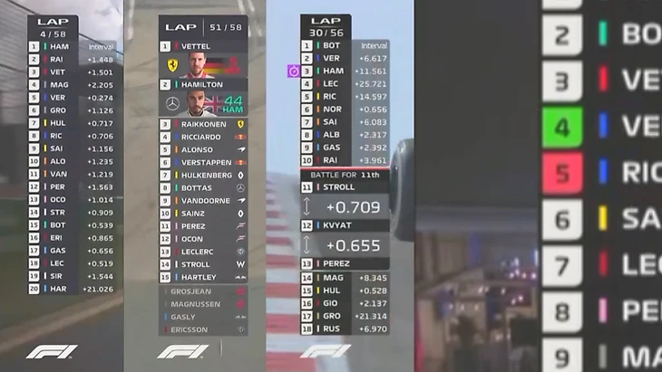 Телезрители стали понимать, как меняется разрыв между двумя болидами по кругам.