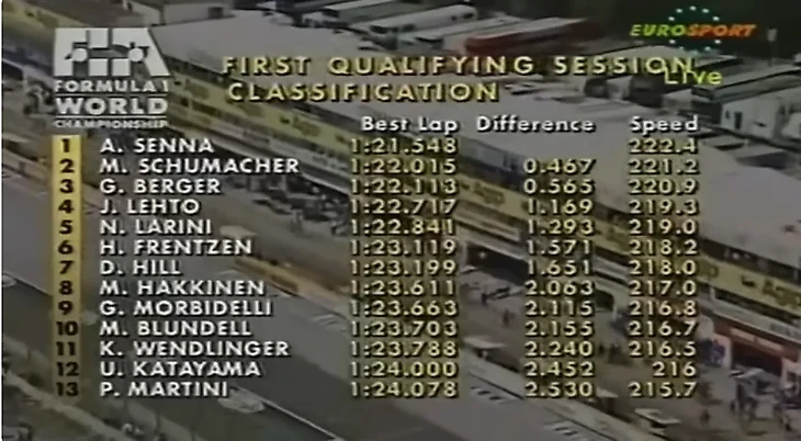 Во-первых, появилась таблица, где можно было увидеть шестерку лучших в реальном времени. Во-вторых, впервые в лайв-режиме показали скорость, с которой едет конкретный болид.