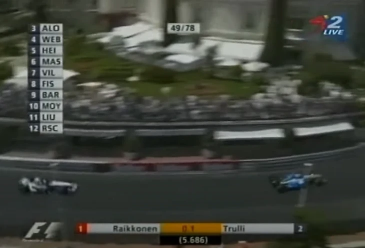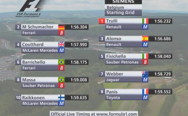 ● В 2003 году произошло не очень заметное, но важное изменение: на экран стали выводить не топ-6, а топ-8 в гонке на этот момент.