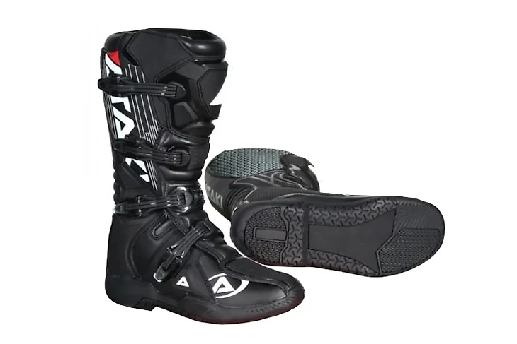 Мотоботы. Высокие ботинки с жесткой подошвой и защитой голени и стопы. Выбирайте, те у которых есть внешние элементы защиты от ударов и тепла, сменные компоненты, чтобы усиливать защиту при их износе. Важно обратить внимание на надежность сцепления с разными видами подножек.