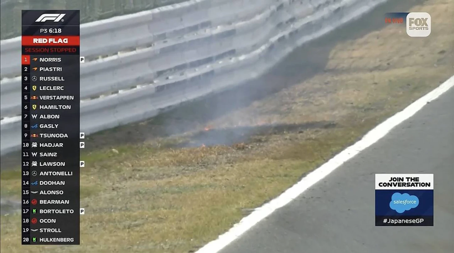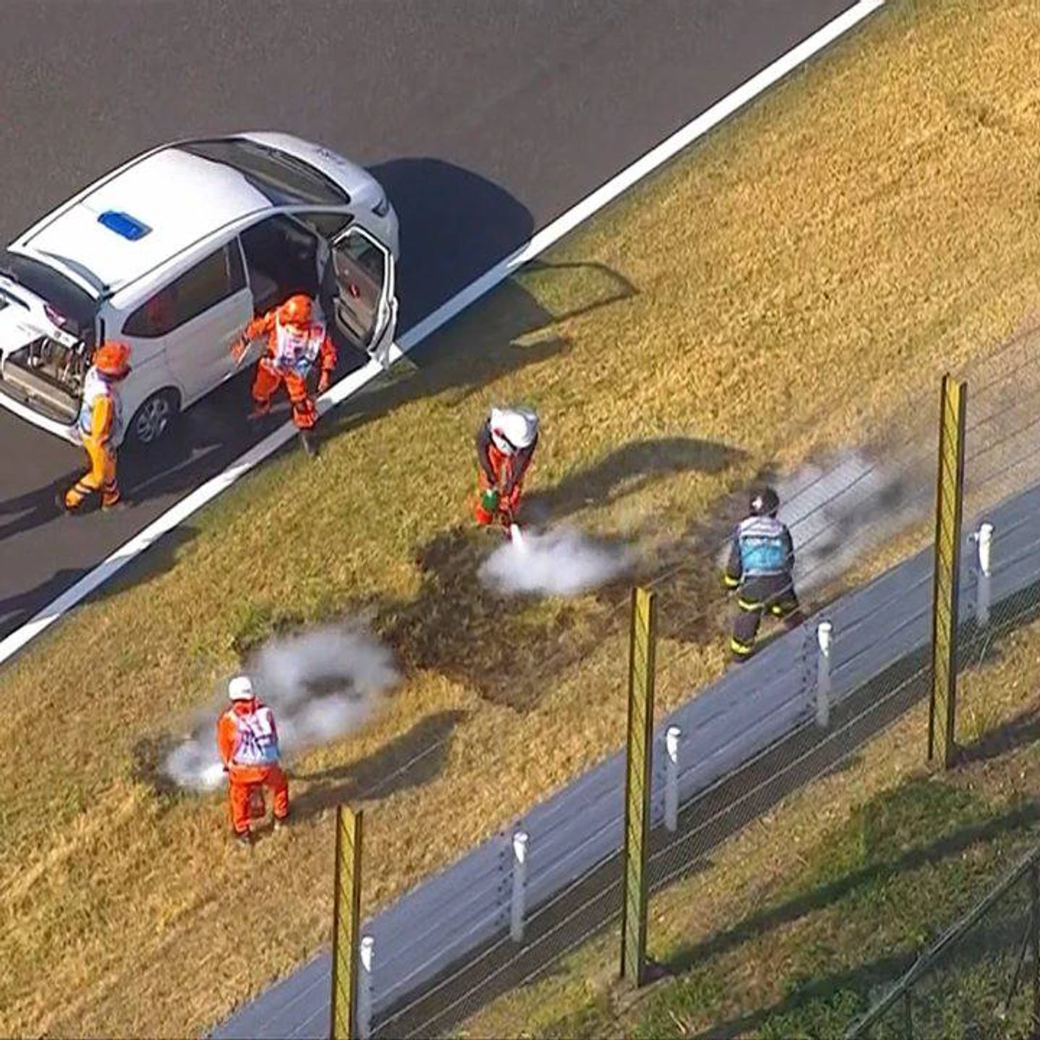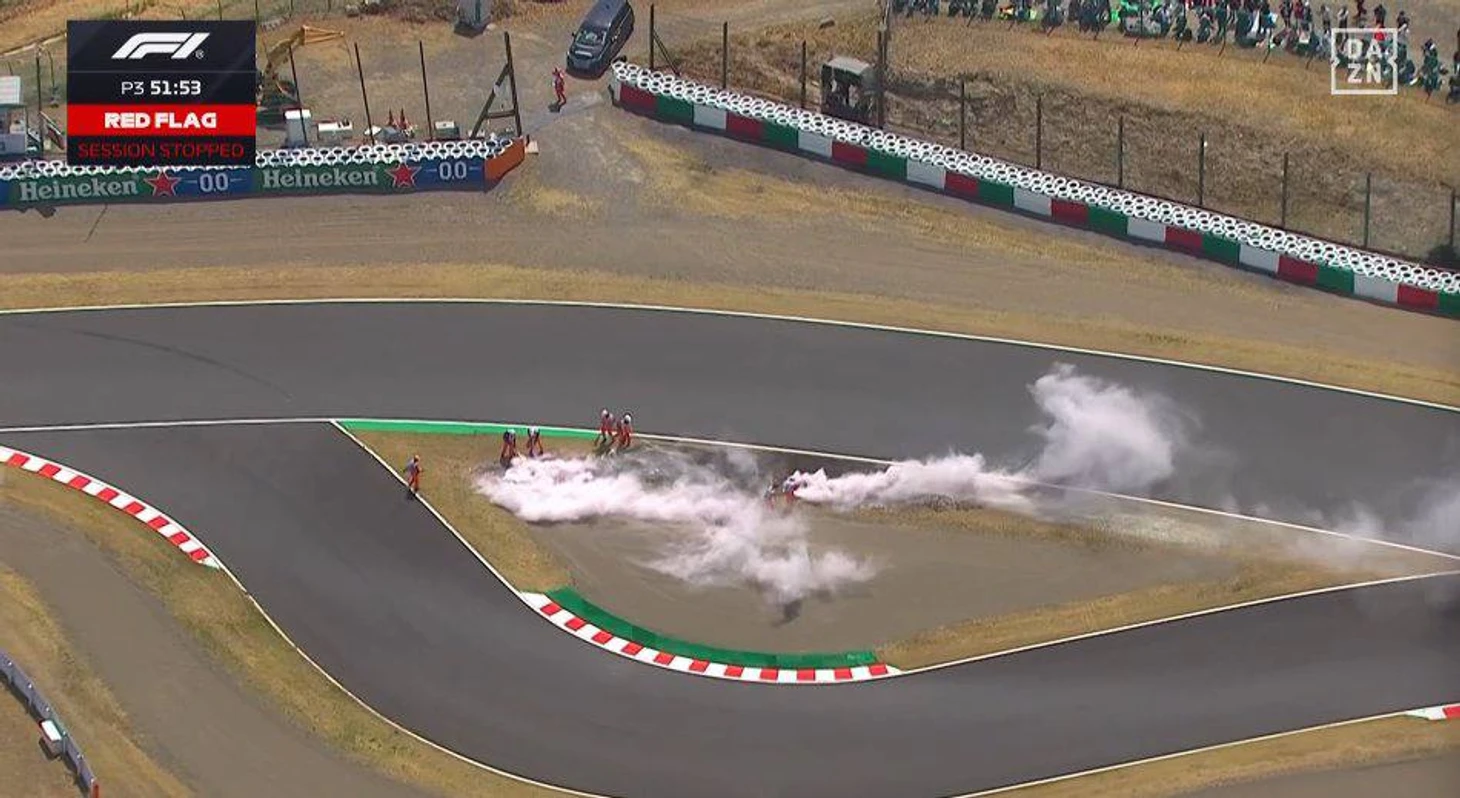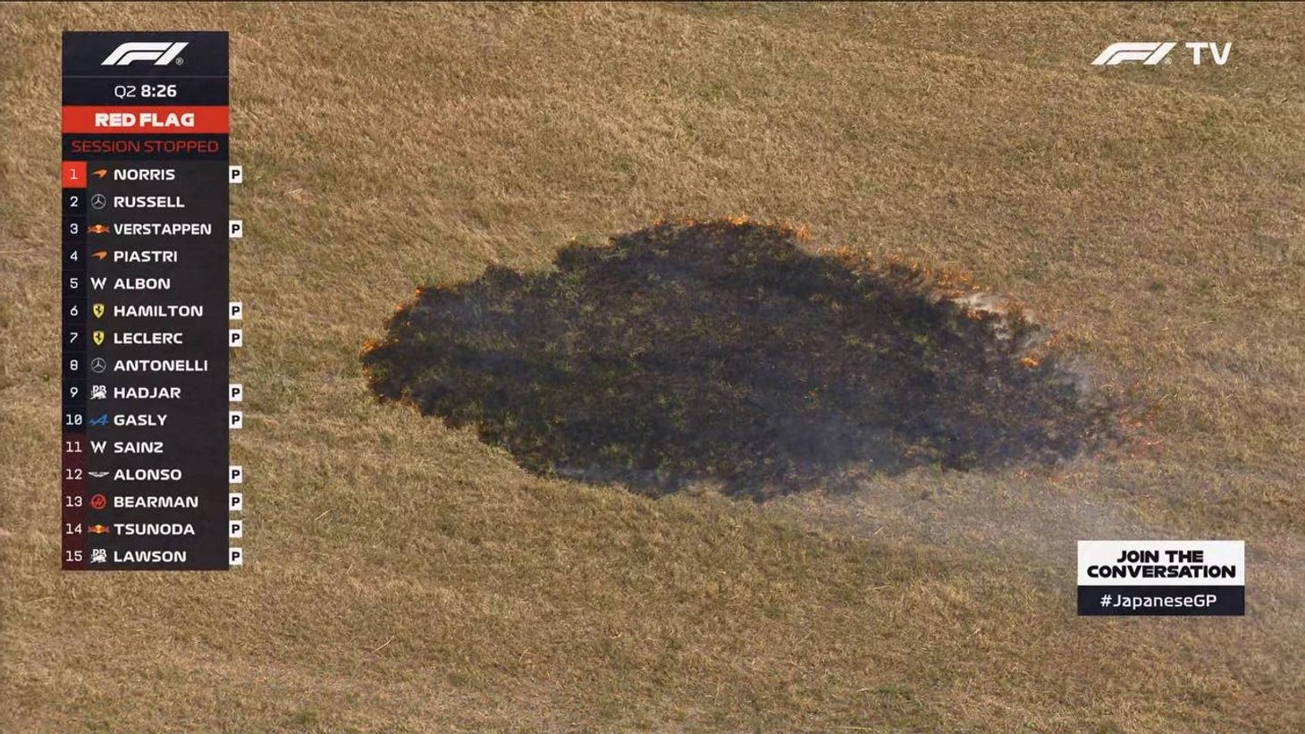Главный скандал «Ф-1» в Японии – пожары на траве у трека и красные флаги! Что это было?