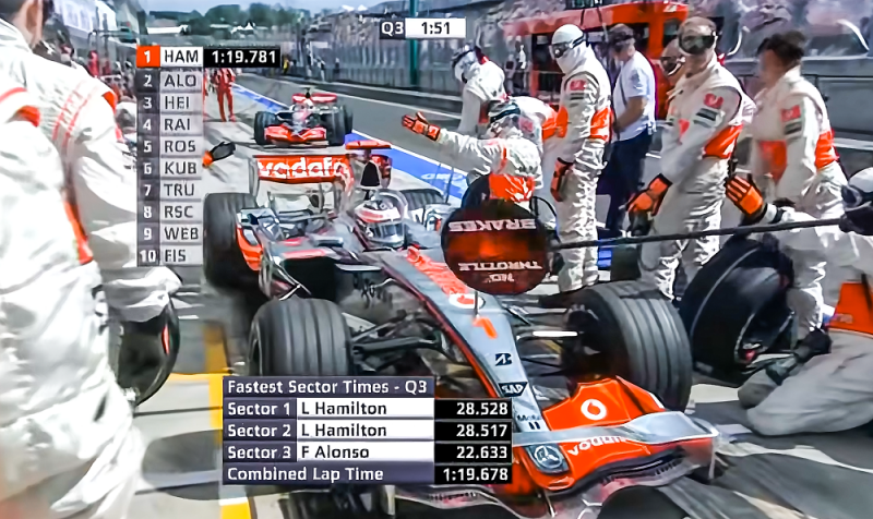 2007: Алонсо блокирует Хэмилтона в боксах во время квалификации Гран-при Венгрии и не дает напарнику уехать на быстрый круг. Титул из-за их схваток уходит Райкконену с преимуществом в 1 балл, а «Макларен» впервые в истории «Ф-1» штрафуют на 100 млн за шпионаж.