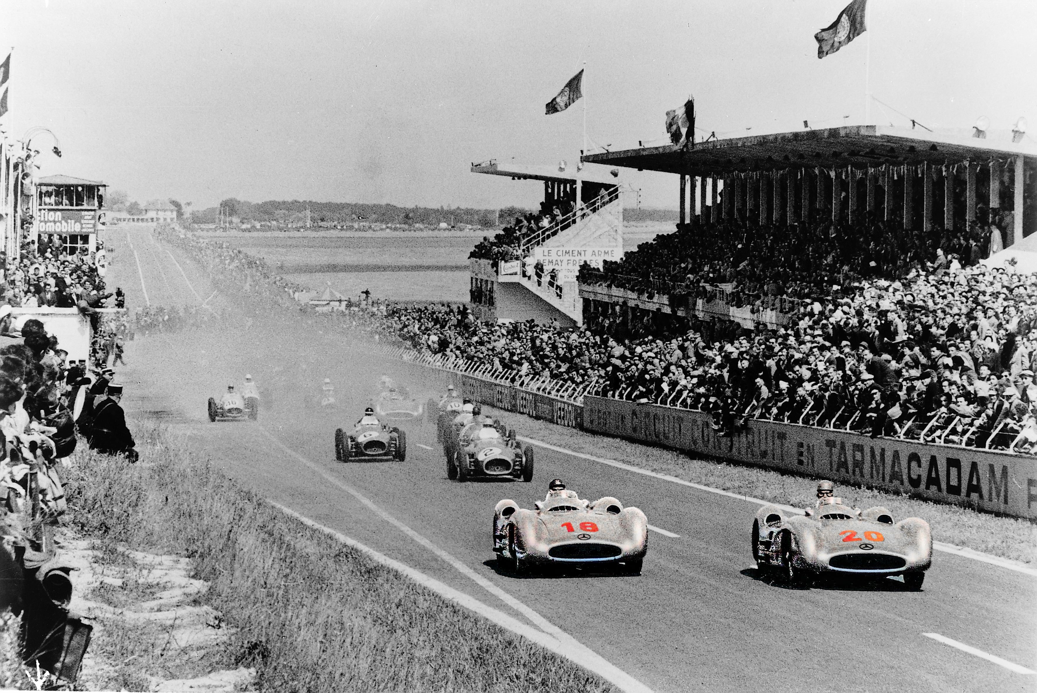 1955: Хуан-Мануэль Фанхио выигрывает третий титул и бьет рекорд «многократности». «Мерседес» завершает гоночные активности до 1985-го из-за кошмарной аварии Левега на «24 часах Ле-Мана» с гибелью зрителей.