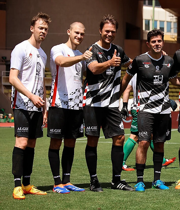 А в тот же день перед показом проводили традиционный футбольный матч между сборной пилотов и сборной звезд Князя Монако – средства от него традиционно направляются в фонд имени Жюля Бьянки на лечение травм головы.