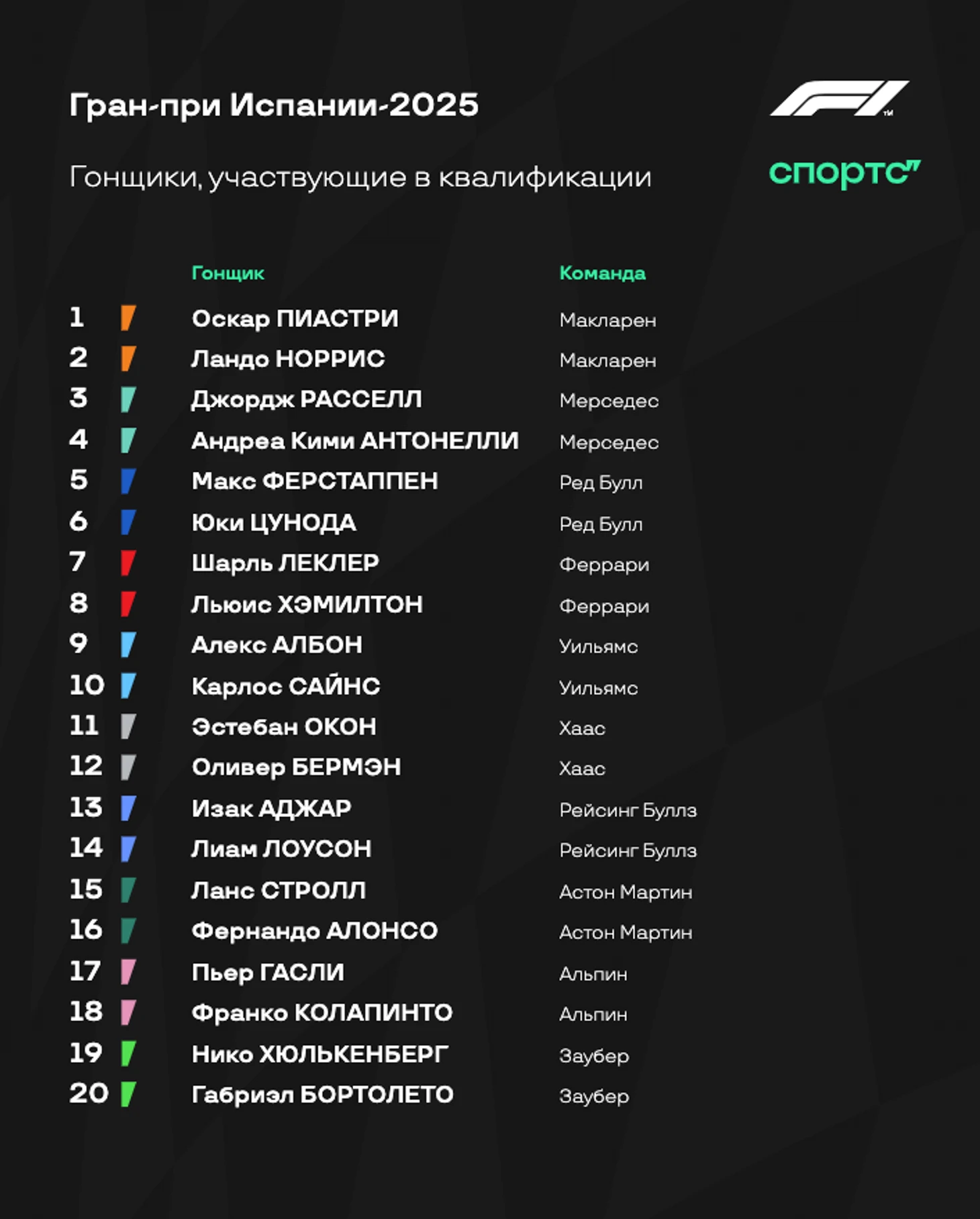 31 мая состоится квалификация к девятому этапу «Формулы-1» сезона-2025, Гран-при Испании.