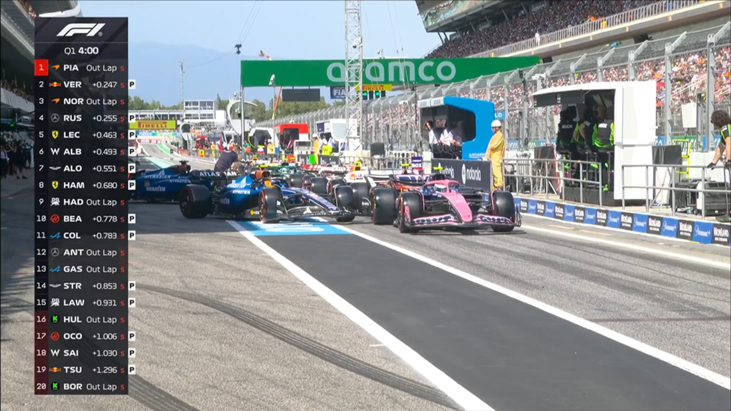 Команды не особо торопятся на трассу, особенно лидеры. Пока из боксов выехали только Стролл, Колапинто, Окон, Бермэн и Албон.