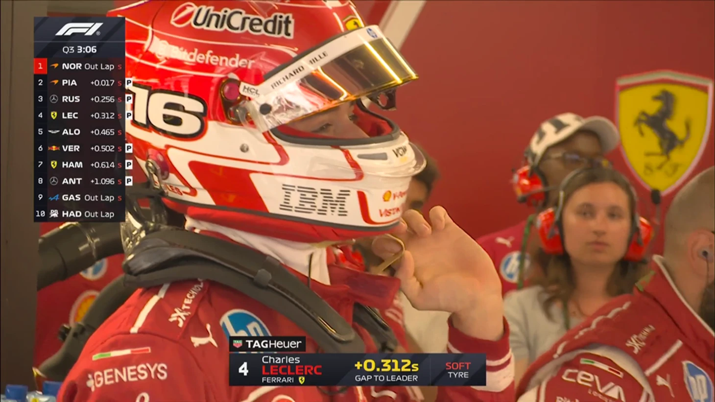 Ну что, поехали, стартовал третий сегмент и борьба за поул. Пока, конечно, «Макларены» смотрятся очень мощно и поул должен доставаться либо Пиастри, либо Норрису. Но у Ферстаппена может быть шанс забраться на первый ряд, если кто-то из пилотов «Макларена» ошибется и завалит свой круг. А так борьба за места на втором ряду поведут Макс, «Феррари» и «Мерседес».