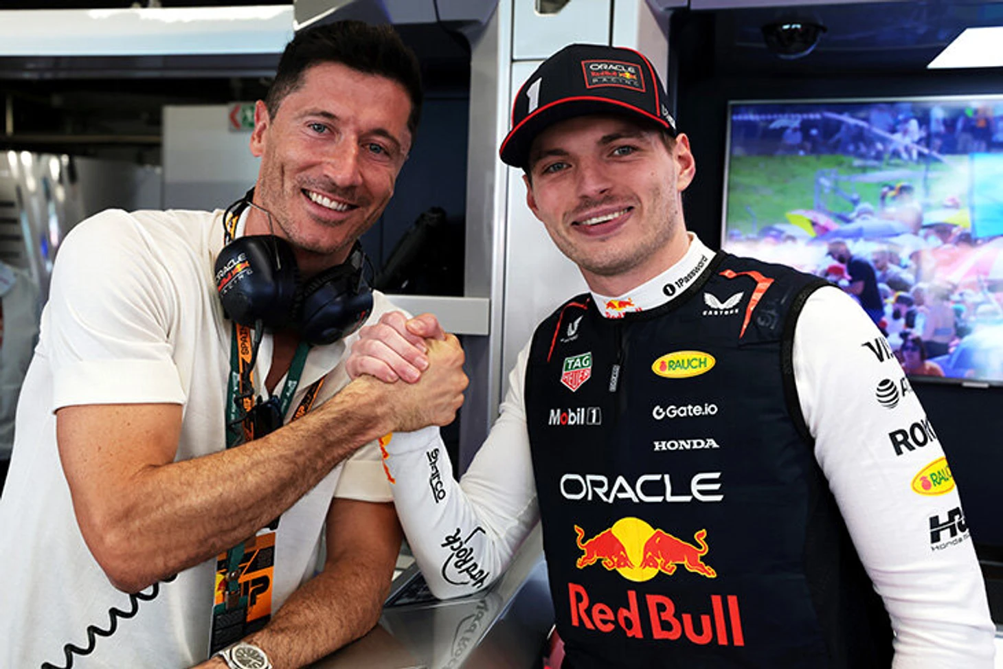 И не только англичане сияли в боксах и на стартовой решетке. Внимание украл гость «Ред Булл» – чемпион Испании и бомбардир №2 Ла Лиги в 36 лет (27 голов!) Роберт Левандовски!