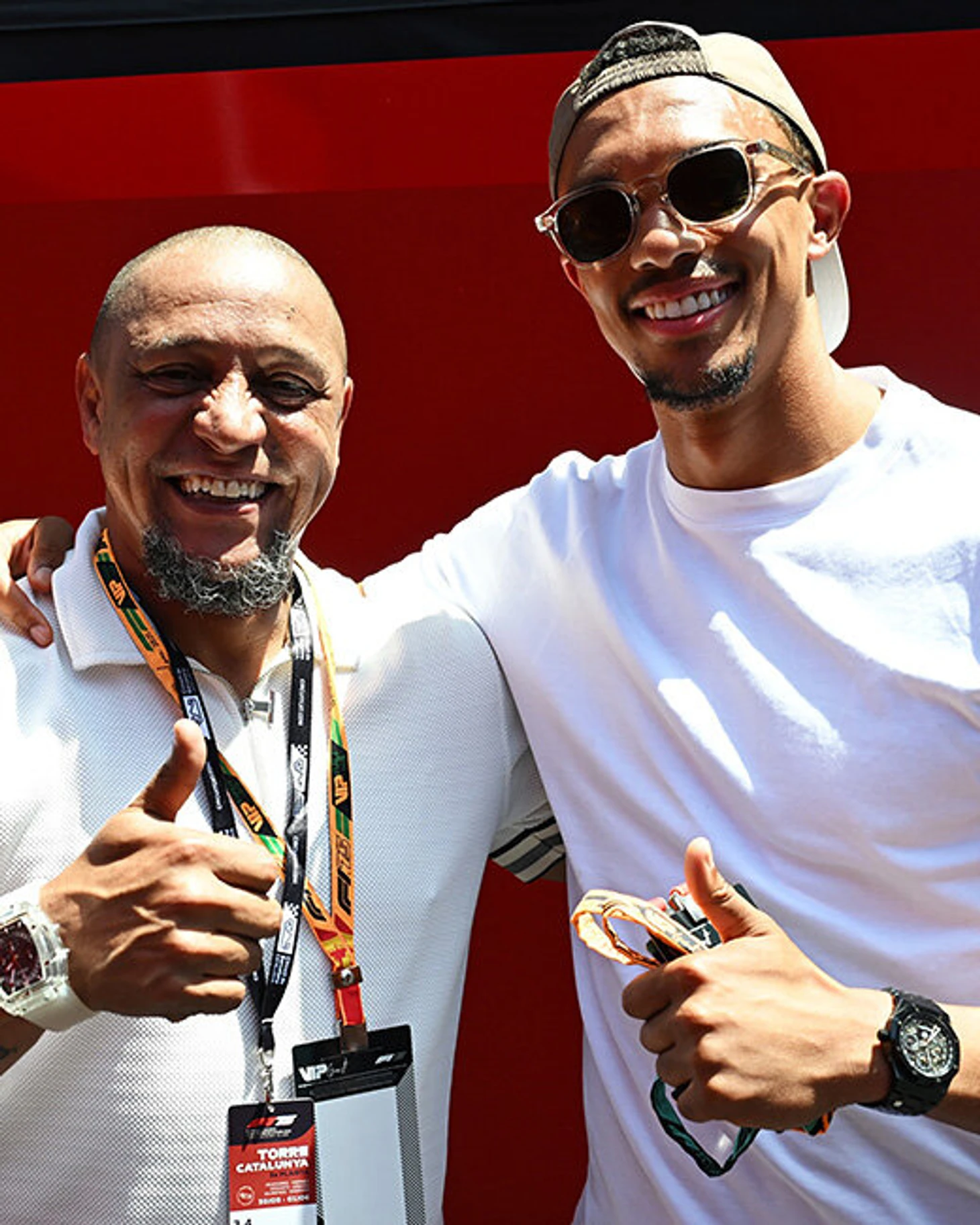 Или просто позирует на фотках с легендами для позитивного образа: с Матерацци, Доменикали, автором Despacito Луисом Фонси, Иваном Кордобой и Роберто Карлосом.