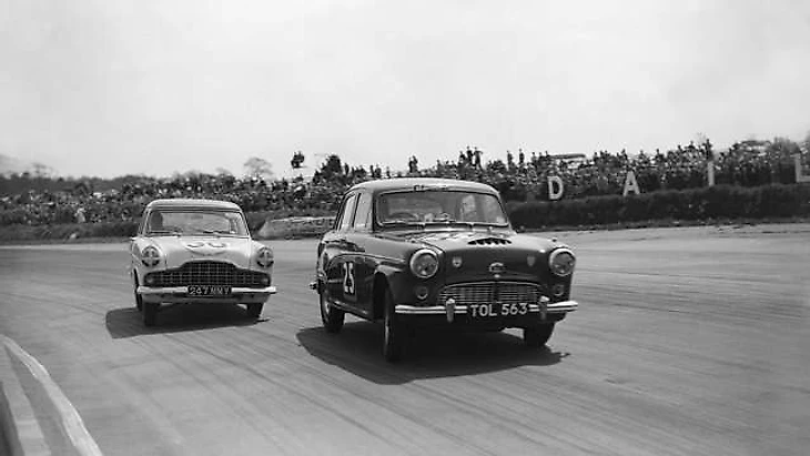 Джек Сирс в Сильверстоуне за рулем своего Austin A105 завоевал первый титул чемпиона Великобритании среди седанов в 1958 году.