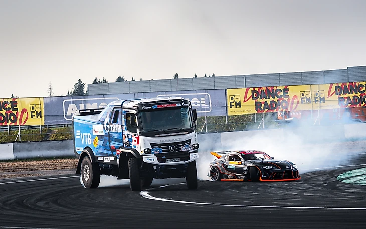 Одним из самых ярких моментов RDS FEST стали заезды рейдового грузовика КАМАЗ-435091 в управляемом заносе. На такой трюк девятитонная машина оказалась способна в руках прославленного пилота команды «КАМАЗ-мастер» Айрата Мардеева, который сначала сольно показал себя в произвольной программе вокруг седельного тягача КАМАЗ (который, к слову, через год превратится в специальный дрифтовый грузовик), а потом продемонстрировал свои навыки в парном дрифте. Победитель «Дакара» и «Шелкового пути» выступал с «Тойота» GR Supra под управлением самого опытного пилота RDS GP Никиты Шикова, который на прошедшем фестивале работал в режиме гоночного вип-такси.