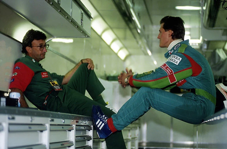 Это, конечно, не так – даже для того времени дебют непосредственно по ходу Гран-при слишком экстремален. На самом деле во вторник перед Гран-при у Михаэля были тесты в Сильверстоуне, и там он получил достаточно времени, чтобы адаптироваться. Поначалу он ехал довольно медленно и даже сам сомневался, что готов к «Формуле-1». Но постепенно расслабился, прибавил, и его итоговое время оказалось на секунду лучше, чем у пилотов команды «Джордан» во время Гран-при Великобритании. Переговоры, впрочем, все равно продолжались до самого четверга.