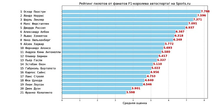Народный рейтинг «Ф1» после 1/2 сезона: Пиастри, Норрис и Леклер в лидерах. Колапинто остается худшим