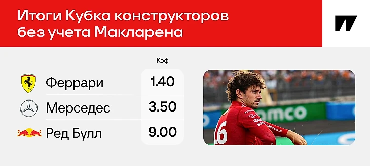 Гонка за второе место в Кубке конструкторов снова обостряется. После Зандвортского кошмара кэф на «Феррари» вырос с 1.20 до 1.40.