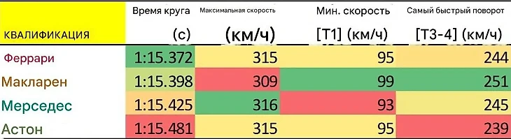 Однако Леклер сохранил шансы: со второго ряда будет удобно атаковать лидера из сильнейшего слипстрима на первом круге. У «Макларенов» меньше шансов именно из-за меньшей эффективности машины на прямых, и главный оппонент «Феррари» – именно фактор Ферстаппена.